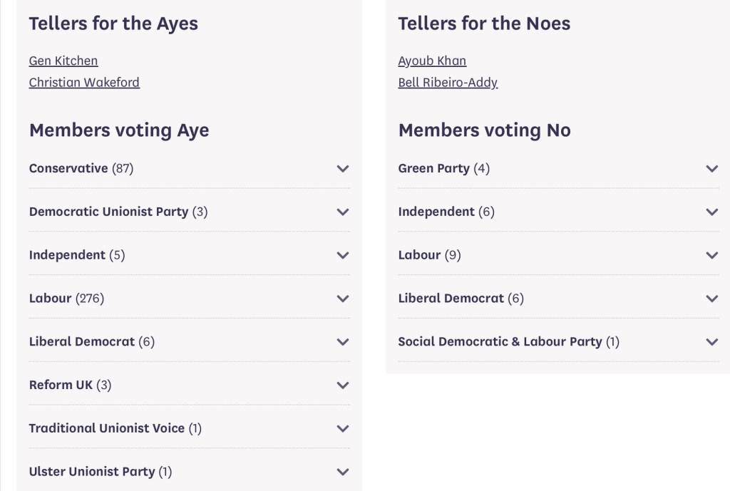 Here’s a breakdown by party. No SNP or Plaid Cymric MP is listed so they evidently abstained!